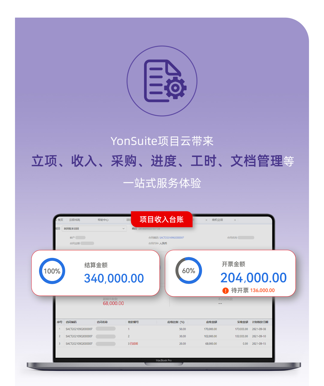 升級后的YonStuite項目服務(wù)和企業(yè)多個業(yè)務(wù)環(huán)節(jié)進行了打通,提供CRM、供應(yīng)鏈、費用報銷、協(xié)同、會計核算一體化。