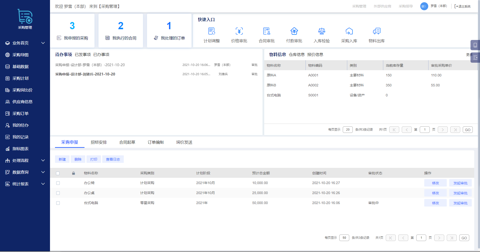 以單位、企業(yè)生產(chǎn)經(jīng)營的采購需求為原點(diǎn),管理供應(yīng)商與采購的相關(guān)信息。按照采購、執(zhí)行、監(jiān)管分立的原則,依靠科學(xué)化、合理化的采購制度和監(jiān)管制度,有效避免采購過程中的暗箱操作。通過信息化手段規(guī)范采購流程,完善合法、合規(guī)的招標(biāo)與合同業(yè)務(wù)流程,加強(qiáng)審批流程控制和數(shù)據(jù)統(tǒng)計(jì)分析,強(qiáng)化對采購業(yè)務(wù)的管控與監(jiān)督。