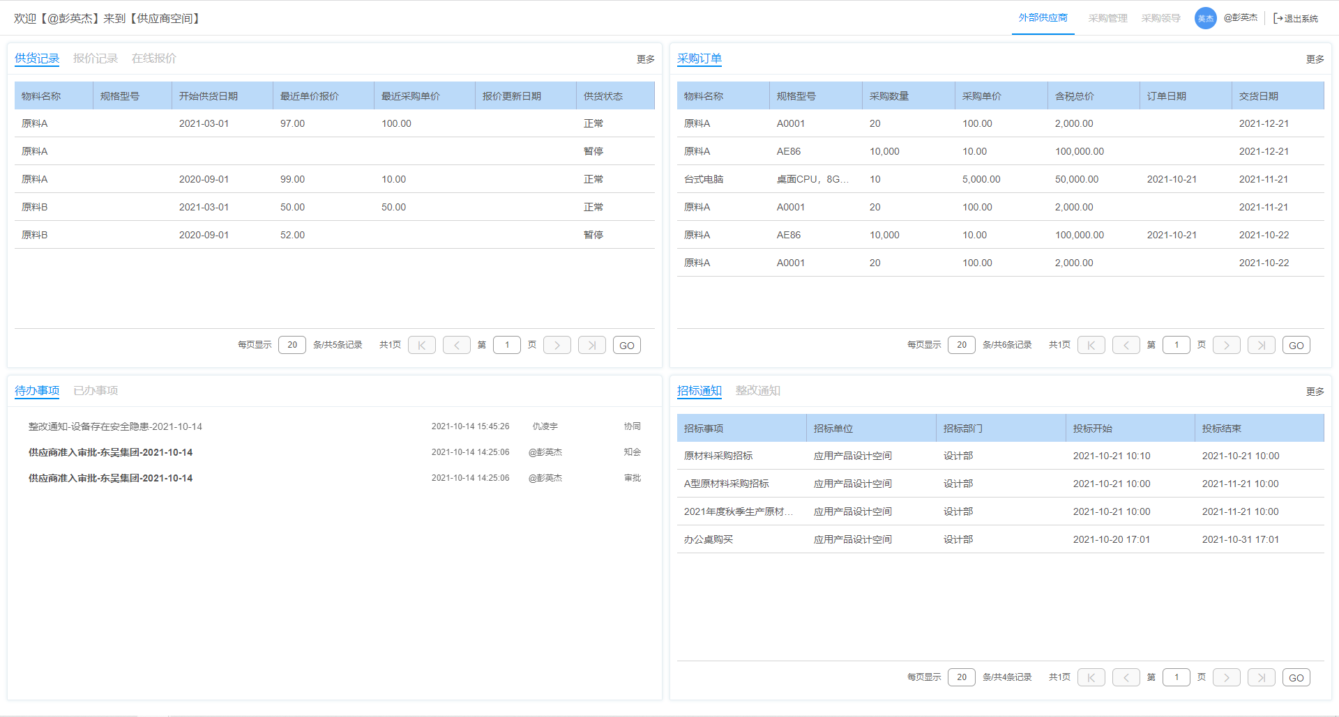 外部供應(yīng)商可以登錄供應(yīng)商門戶,在線更新自身供貨清單中的報價,或者根據(jù)招標(biāo)信息在線投標(biāo)。相關(guān)數(shù)據(jù)或流程直達(dá)采購的相關(guān)人員。