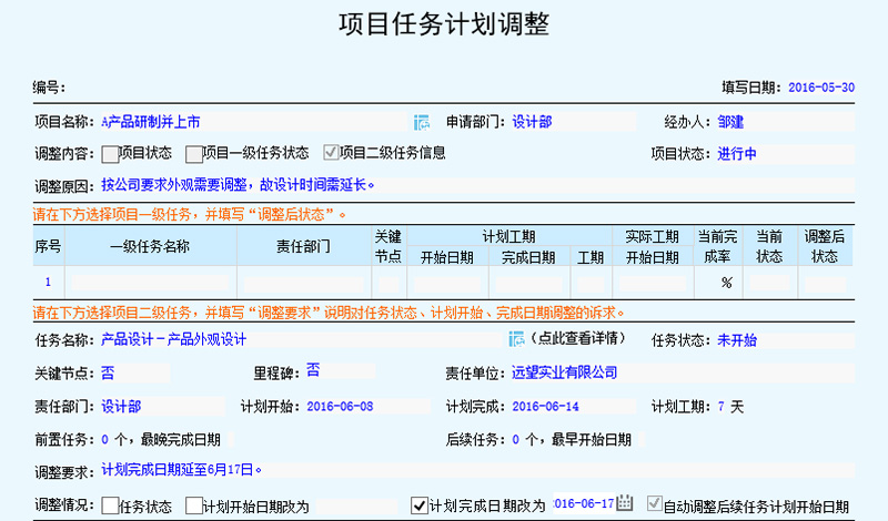 計(jì)劃調(diào)整審批完成以后,會(huì)在計(jì)劃信息表中的計(jì)劃調(diào)整記錄中記錄計(jì)劃調(diào)整的情況,便于后續(xù)查詢與追溯。