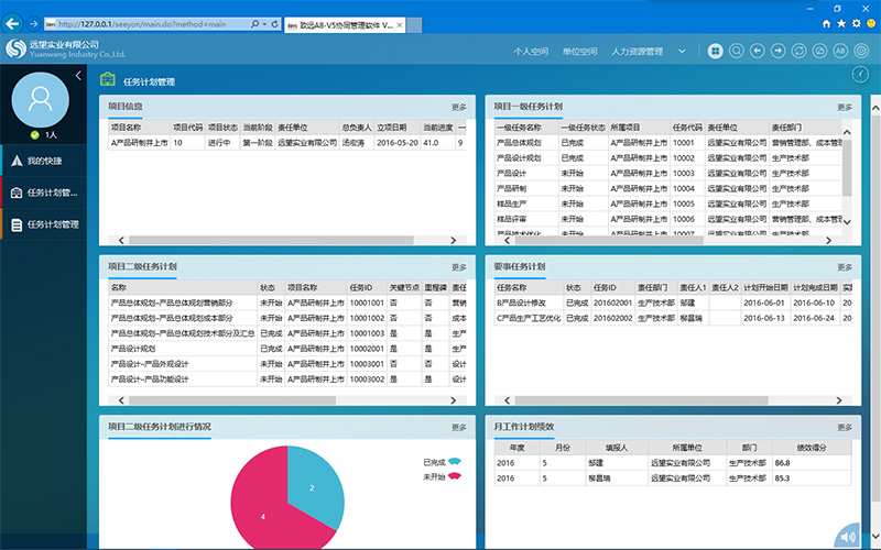計(jì)劃任務(wù)管理系統(tǒng)規(guī)劃建議在已有的全員使用的致遠(yuǎn)協(xié)同辦公平臺(tái)上構(gòu)建計(jì)劃任務(wù)管理業(yè)務(wù)應(yīng)用,利用已有的組織人員結(jié)構(gòu)和相關(guān)資源的,快速實(shí)現(xiàn)計(jì)劃任務(wù)管理。